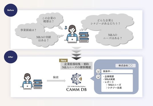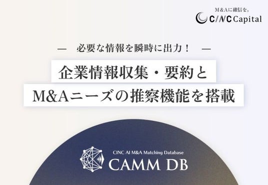 【株式会社CINC】子会社のCINC Capital、生成AIを活用したM&A仲介マッチングシステム「CAMM DB」に、対象企業の情報収集を効率化しM&Aニーズを推察する機能を搭載