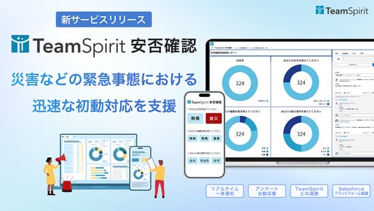 株式会社チームスピリット(本社:東京都千代田区、代表取締役CEO:道下 和良、以下チームスピリット)は、企業の危機管理体制を強固にするための新サービス「TeamSpirit 安否確認」をリリースしたことをお知らせします。Salesforceプラットフォームの安定したクラウド基盤のもとで、災害時などの緊急事態におけるスピーディで正確な従業員の安否確認を実現し、企業の迅速な初動対応を支援します。