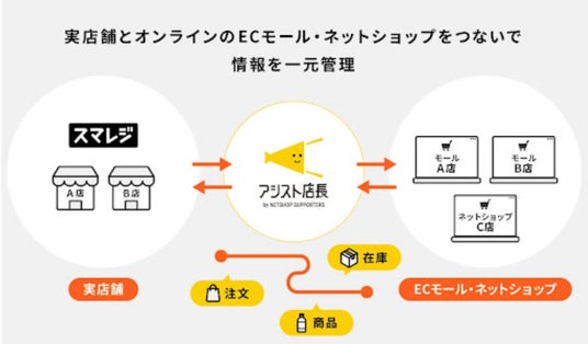iPadなどのタブレットを利用したクラウドPOSレジ『スマレジ』を展開する株式会社スマレジ(本社:大阪市中央区、代表取締役:宮崎 龍平、以下「当社」)は、子会社の株式会社ネットショップ支援室(本社:東京都港区、代表取締役:竹澤 洋一、以下「ネットショップ支援室」)が提供するEC一元管理システム『アシスト店長』と機能連携(新APIによる接続)を開始しました。