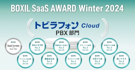 トビラフォン Cloud、「BOXIL SaaS AWARD Winter 2024」PBX部門で「Good Service」ほか9つのNo.1に選出