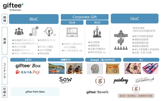 提供サービス:「giftee Box(R)」、「えらべるPay(R)」など