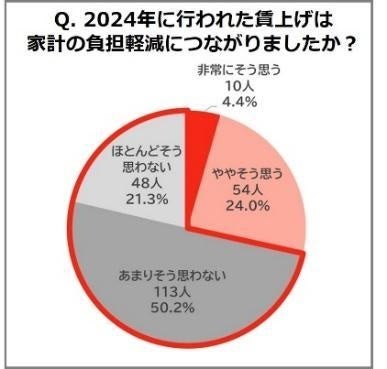 昨年は、高水準の賃上げを記録した一方で、中小企業はまだまだ厳しい現状に直面しています。歴史的賃上げとなった昨年も大企業・中小企業の賃上げ率の格差は昨年さらに拡大。加えて従業員の賃金格差も拡大する中、共働き世帯が急増しており、「子育てとの両立・家事の負担・苦しい家計」と3Kがのしかかっている状態にあると言えます。実際に、昨年12月に行った調査(※)では、賃上げがあった2024年も7割以上が「賃上げは家計負担の軽減につながっていない」と回答しました(右図)。