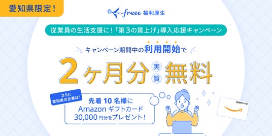 愛知県内の企業限定で、#第3の賃上げアクションをサポートするためfreee福利厚生 ベネフィットサービスを導入応援キャンペーンを実施します。
