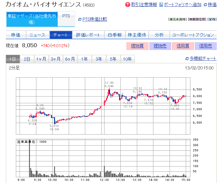 ナノキャリア、15万超え、今日も強いそしてメディネットは2万を挑戦中、プレシジョン・システム・サイエンス の3つは昨日に続いて強い!カイアムは弱いが高値圏だけど・・・・・テラは1000円の壁か?バイオも良いものしか上がらない感じですねぇ -