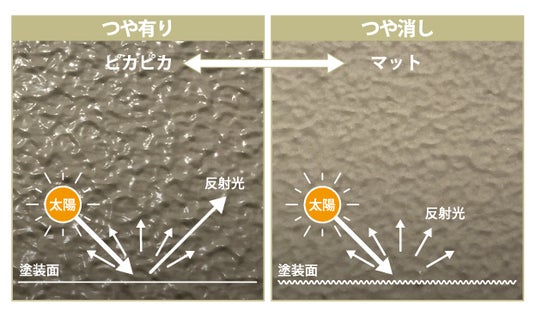 ※艶消し塗料を施工した際に、塗膜にわずかに現れる艶のこと