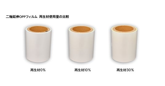 さらに、再生ペレットをフィルム原料として使用する事で再び元のフィルムに戻す、いわゆる水平リサイクルの検討を進めており、再生ペレットを30%使用した二軸延伸ポリプロピレンフィルム(OPP)の物性評価において、実用レベルの品質となっていることを確認しました。