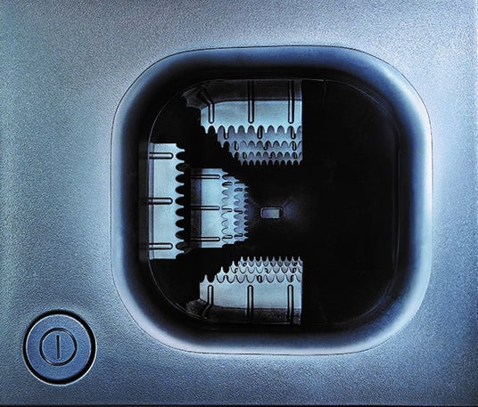 ケースに戻すついでに電源を入れてモップを上下に動かすだけで、収納部の内側についているギザギザのゴムブラシがモップに付着したホコリをかき取って吸引し、キレイな状態になります。