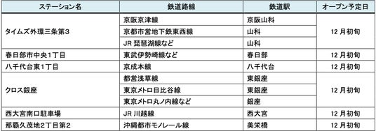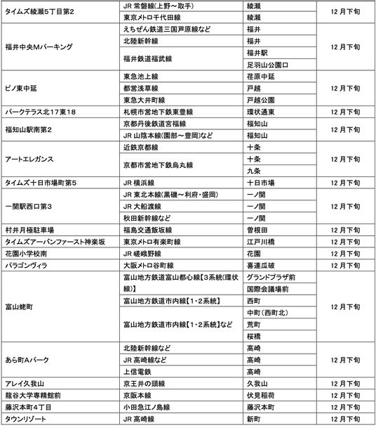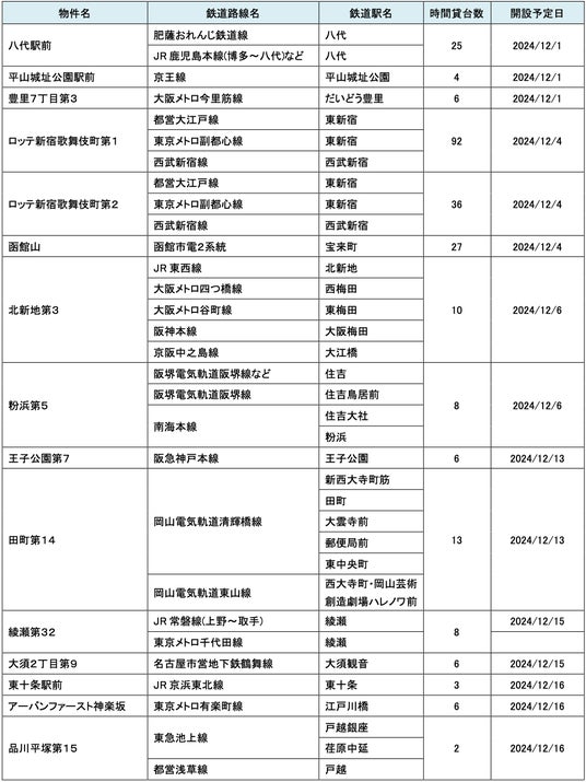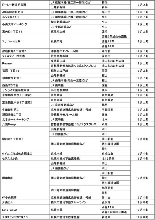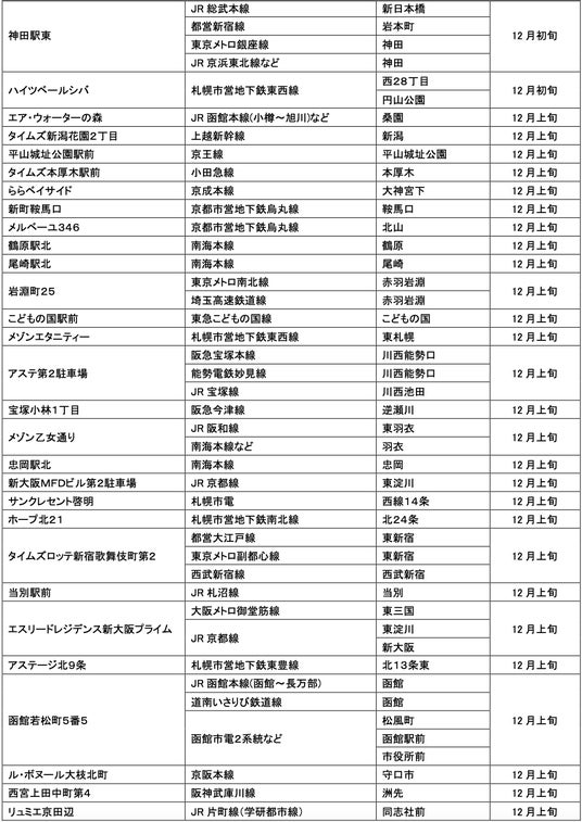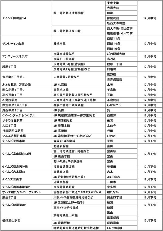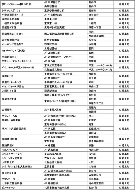 12月にオープンおよびオープン予定の「パーク&ライド」が可能な駐車場は24件、「レール&カーシェア」が可能なステーションは139件です。