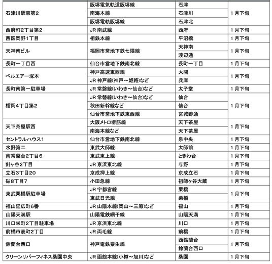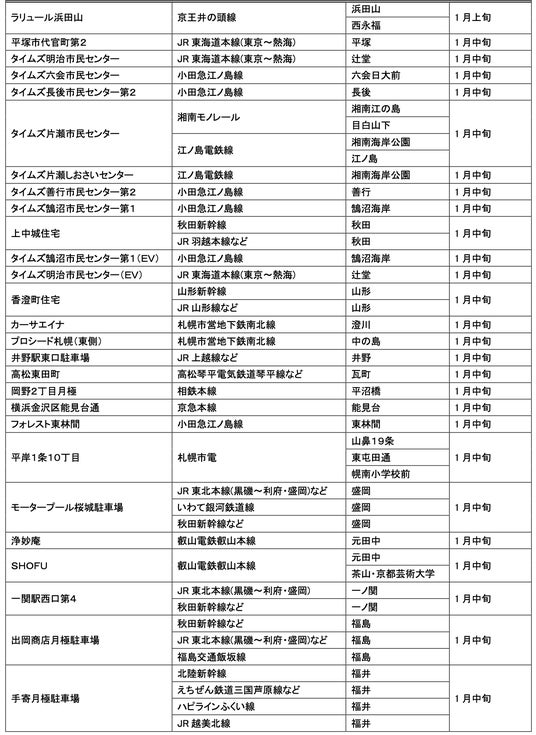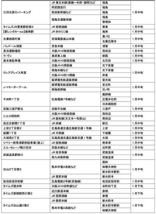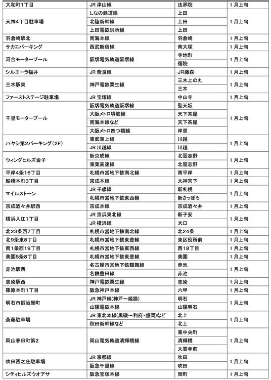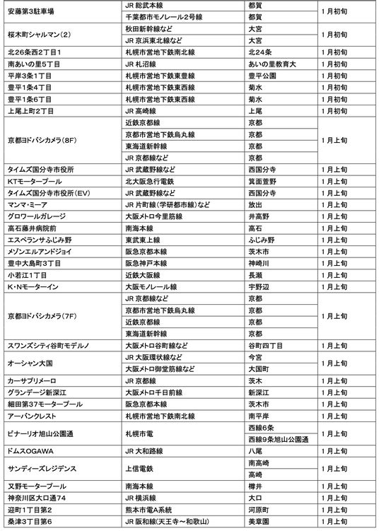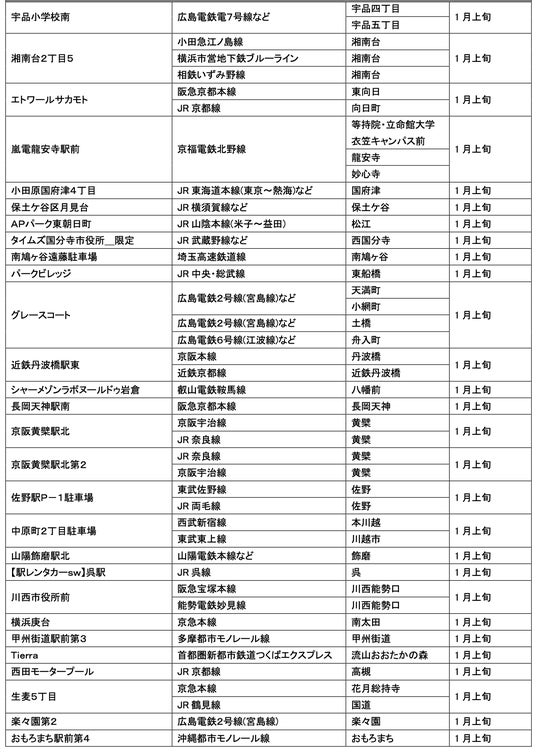 1月にオープンおよびオープン予定の「パーク&ライド」が可能な駐車場は9件、「レール&カーシェア」が可能なステーションは194件です。