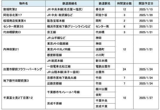 パーク24株式会社(本社:東京都品川区、社長:西川光一)は、温室効果ガスの排出量削減に繋がる移動法「パーク&ライド」および「レール&カーシェア」が可能なタイムズパーキングおよびタイムズカーステーションの2025年1月におけるオープン予定をお知らせいたします。