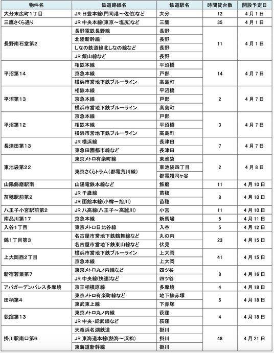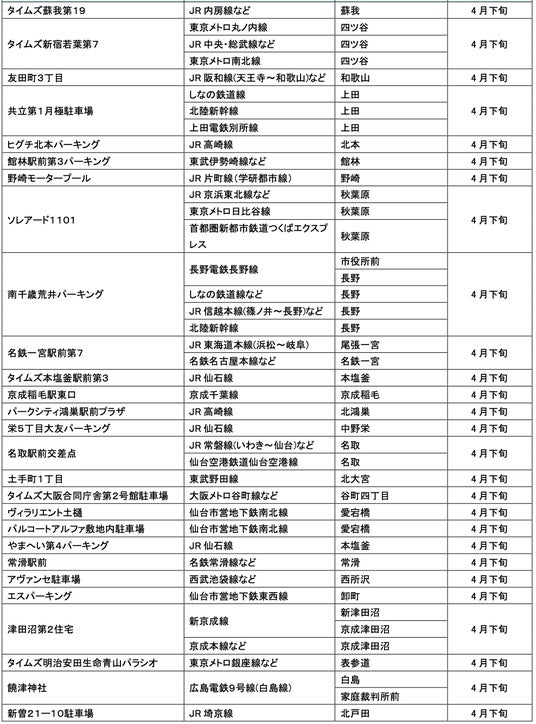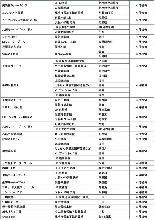 4月にオープンおよびオープン予定の「パーク&ライド」に適した駐車場は36件、「レール&カーシェア」に適したステーションは230件です。