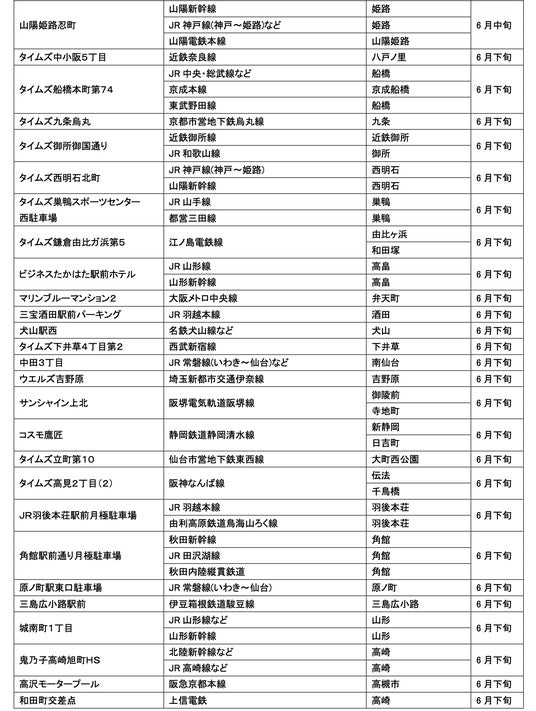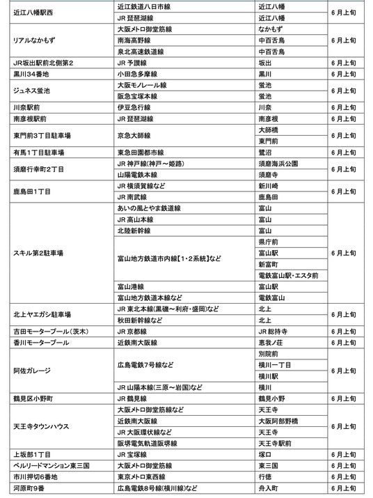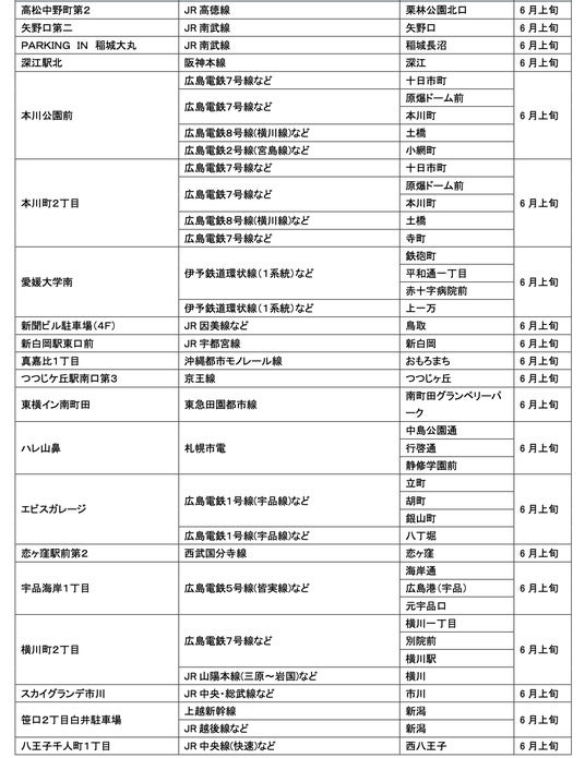 パーク24株式会社(本社:東京都品川区、社長:西川光一)は、温室効果ガスの排出量削減に繋がる移動法「パーク&ライド」および「レール&カーシェア」が可能なタイムズパーキングおよびタイムズカーステーションの2025年6月におけるオープン予定をお知らせいたします。