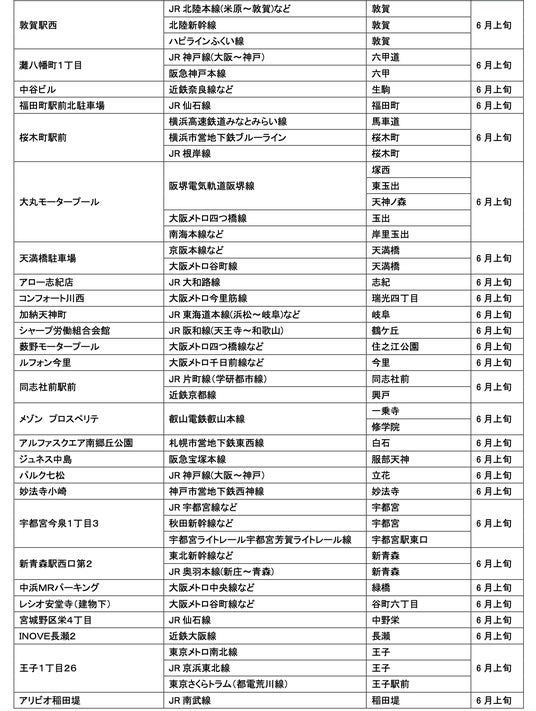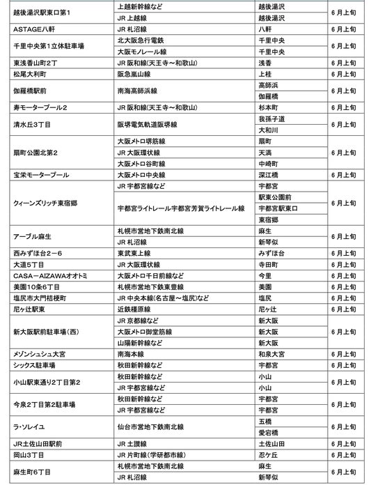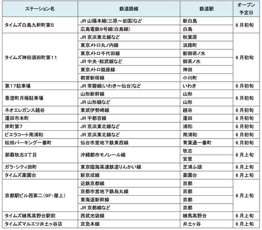 6月にオープンおよびオープン予定の「パーク&ライド」に適した駐車場は20件、「レール&カーシェア」に適したステーションは204件です。
