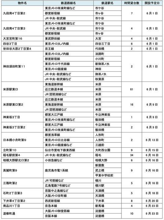 駐車場およびカーシェアステーションのオープン予定については毎月第5営業日にお知らせいたします。
