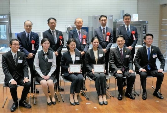 最終選考出場選手と(前列)と審査員・大会委員長(後列) 東邦ガス プロ厨房オイシスにて