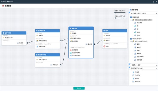 システムの運用や保守において、特定の管理者のみが構造を理解している状況では、メンテナンスや継続的な運用が困難になります。そこで、システムごとのデータベース構造を視覚的に表示する「オブジェクトマップ」を搭載し、システムの全体像やデータの流れを一目でわかるようにしました。これにより、属人化防止に加え、システムの変更による影響を事前に把握できるようになります。