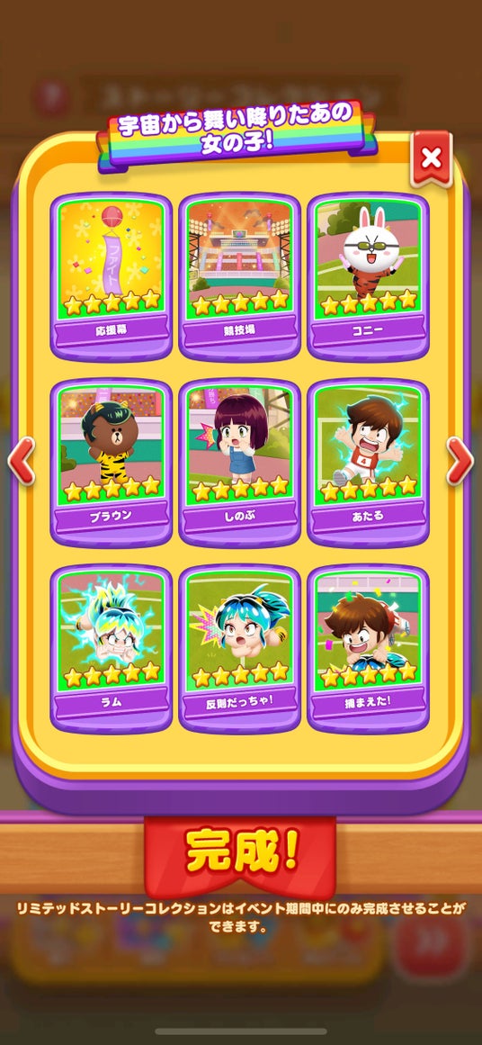 期間中、ゲーム内に『TVアニメ「うる星やつら」』のリミテッドストーリーカードが登場します。特別なデザインのリミテッドストーリーカードを集めましょう。さらにカードセットを3種類完成させると追加報酬を獲得できます。