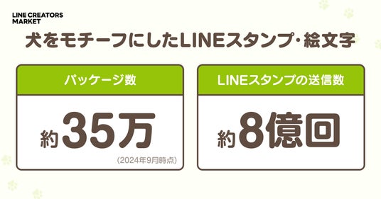 「LINE」では、犬をモチーフにしたLINEスタンプが年間8億回以上送信(※1)されているほど人気で、「LINE Creators Market」でも、犬をモチーフにした約35万パッケージものLINEスタンプ・絵文字が販売されています(※2)。