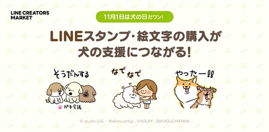 LINEヤフー株式会社は、LINEスタンプ・絵文字を制作・販売できるプラットフォーム「LINE Creators Market(https://creator.line.me)」において、11月1日の「犬の日」にあわせ、LINEスタンプの購入や制作が犬の保護・支援につながる特別企画「LINEスタンプ・絵文字で #犬の日 を盛り上げよう!」キャンペーンを開催します。
