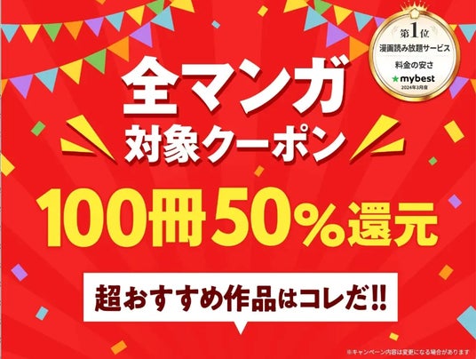 Amebaマンガでは、新規会員登録をするとお好きなマンガ100冊まで50%還元されるクーポンをプレゼント中です。ぜひこの機会にAmebaマンガをご利用ください。