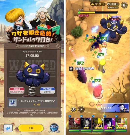 「ワザを叩き込め!サンドバッグ打ち!」では、制限時間内にサンドバッグ(人形)にダメージを与えポイントを獲得します。ポイントに応じて報酬がもらえます。