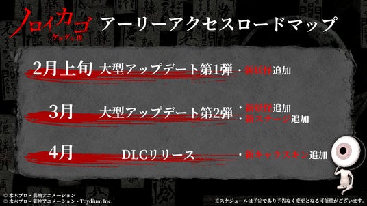 東映アニメーション株式会社(本社:東京都中野区、代表取締役社長:高木勝裕)と株式会社トイジアム(本社:東京都千代田区、代表取締役会長:森好文)は、「ゲゲゲの鬼太郎」を原作とした新作ホラーゲーム『ノロイカゴ ゲゲゲの夜』の大型アップデートを、2月5日(水)12時00分に実施したことをお知らせいたします。今回のアップデートの目玉は Extra-Boss である【ずんべら坊】の追加になります。