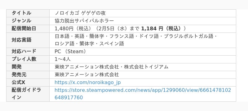 『ノロイカゴ ゲゲゲの夜』は2025年2月5日現在、Steamのレビューにて「非常に好評」と、多くのユーザー様からご評価いただいております。皆様にさら楽しんでいただけるよう、今後も定期的にアップデート、改善を行っていく予定です。