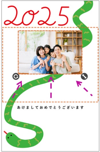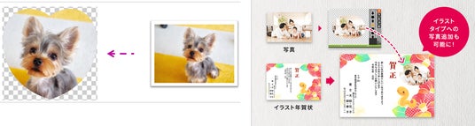 好きな形に写真を切り取ってスタンプにできる イラスト年賀状に写真スタンプを追加可能