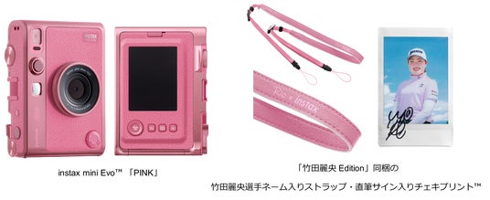 また、富士フイルムホールディングス株式会社のスポンサー契約選手であるプロゴルファーの竹田麗央(たけだ りお)選手が、年間を通じた総合的な活躍を評価する「2024 JLPGAメルセデス・ランキング」で年間女王に輝いたことを記念し、「竹田麗央 Edition」を富士フイルム公式ショッピングサイト「フジフイルムモール」において数量限定で2025年2月28日に発売します。「竹田麗央 Edition」は、特別カラー「PINK」の「mini Evo」に竹田選手のネーム入りストラップと直筆サイン入りチェキプリント(TM)を同梱したモデルです。
