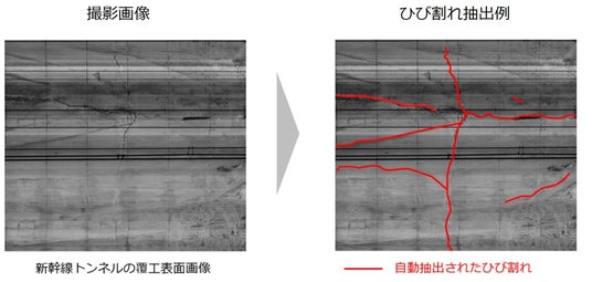 富士フイルム株式会社(本社:東京都港区、代表取締役社長・CEO:後藤 禎一)は、東日本旅客鉄道株式会社(本社:東京都渋谷区、代表取締役社長・喜㔟 陽一、以下、JR東日本)とともに、新幹線トンネルのひび割れを精度良く自動的に抽出するAIを実用化しました。本AIは、富士フイルムの社会インフラ画像診断サービス「ひびみっけ」の画像解析AIをベースにJR東日本の新幹線トンネル検査に最適化したものです。2025年度からJR東日本の新幹線トンネル検査に全面的に導入され、検査業務の効率化に貢献します。