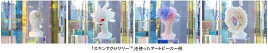 また美のインスピレーションが湧き、共創する場所として、さまざまなアート企画を予定しており、3か月毎にテーマを変えてアートピースを展示します。第一弾として、2024年9月にマクアケで限定発売した「スキンアクセサリーTM」※4をfibona Labにて再販売、さらにパウダー状の香りのアイテム「香肌晶(かはだしょう)」※5を2025年1月22日(水)より新発売します。アートピースは、資生堂ビューティークリエイションセンターのアーティストや外部のクリエイティブサポートチームメンバーである特殊メイクアップアーティストのAmazing JIRO氏による「スキンアクセサリーTM」を使用したヘッドマネキンを展示します。