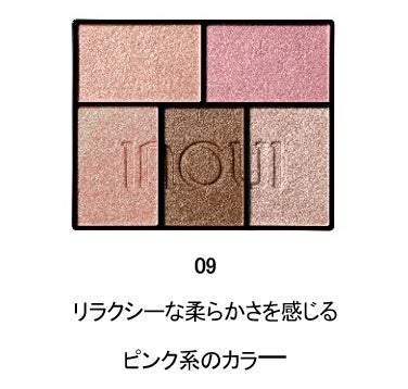 「インウイ アイズ」は、張り詰めたもの(心)を解きほどくように、やわらかなニュアンスを添える甘さだけではない透け感のあるそれぞれの光を重ねることで、立体感をもたらしながら瞬きの度に揺らめく仕上がりを叶えるピンク系カラーです。透け感のあるカラーと肌色が混ざり合うことによって、余裕のある穏やかなまなざしが生まれ、その人だけ柔らかな印象へ導きます。
