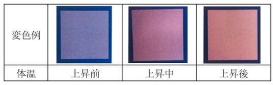 当社が持つ「体温を見える化をする研究技術」とTOPPANが持つ「フィルム製膜技術」を用いた、温度によって色が変わるシール。伸縮性があり、運動時にも貼付しやすいことが特長の一つです。今まで感覚的だった体温上昇に対する暑熱対策を、客観的な色の変化で確認が可能となります。体温変化の兆候の目安となることを目標とします。