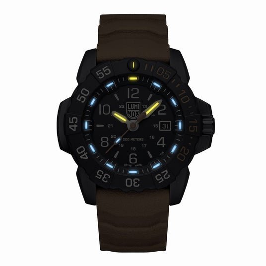 新モデルは、ルミノックスのシグネチャーである3500シリーズの頑丈なデザインを誇り、45mmのCARBONOX(TM)ケースとベゼルを搭載し、過酷な状況にも必要といえる耐久性を確保。200メートルの防水性とNSFロゴが刻印されたねじ止め式316Lステンレススティールケースバック、文字盤は傷に強いと言われる強化ミネラルガラスで保護されています。