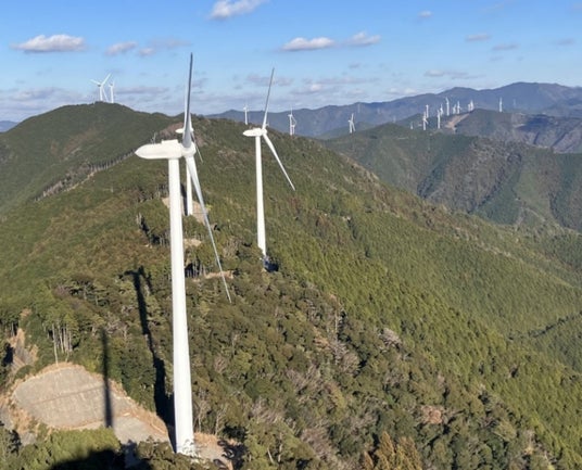 本PPAの対象はコスモエコパワーが運営する中紀ウィンドファームであり、2021年4月に商業運転を開始し、NTNも事業を展開する関西エリアへ電力を供給しています。稼働する風力発電機には、NTNのベアリング(軸受)のほか、運転状況の監視や予防点検などへの活用を目的とした状態監視システム(CMS:Condition Monitoring System)「Wind Doctor(R)」が採用されています。コスモエコパワーにとっても、発電機の部品供給元とPPAを結ぶのは初めてのケースとなります。