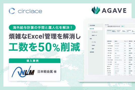 サークレイス株式会社(本社:東京都中央区、代表取締役社長:佐藤 スコット、以下「当社」)が提供する、海外人事労務に特化したクラウドサービス「AGAVE(アガベ)」の「AGAVE海外給与計算」が、日本軽金属株式会社(本社:東京都港区、代表取締役社長:岡本 一郎、以下「日本軽金属」)に導入されました。日本軽金属では、海外駐在員の給与改定業務においてExcelによる煩雑な管理が課題となっていましたが、本導入により工数を50%削減し、属人化の解消と業務の標準化を実現しています。