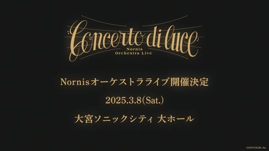 ANYCOLOR株式会社(本社:東京都港区 代表取締役:田角陸、以下「当社」)が運営するVTuber / バーチャルライバーグループ「にじさんじ」は、Nornis(戌亥とこ、町田ちま2名による女性ボーカルユニット)は、2025年3月8日(土)にNornis Orchestra Live「Concerto di luce」を開催することに加え、新曲「Wishing you」のデジタルリリースを、2024年9月29日(日)から開始したことをお知らせいたします。