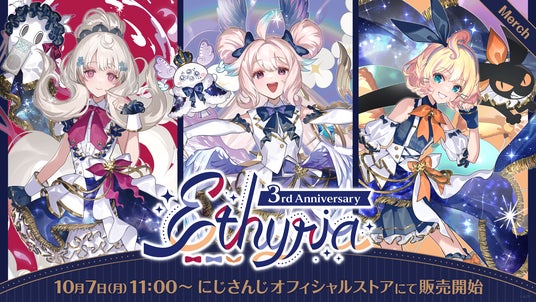 ANYCOLOR株式会社(本社:東京都港区 代表取締役:田角陸、以下「当社」)が運営するVTuber / バーチャルライバーグループ「NIJISANJI EN」は、2024年10月7日(月)11時(JST)よりVTuberユニット『Ethyria』の「Ethyria 3rd Anniversary」の販売を開始いたします。