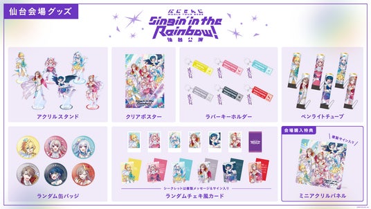 「にじさんじ WORLD TOUR 2025 Singin’ in the Rainbow!」ライブツアーグッズ、仙台公演グッズは、2025年5月10日(土)11時から、にじさんじオフィシャルストア(https://shop.nijisanji.jp/)にて販売いたします。