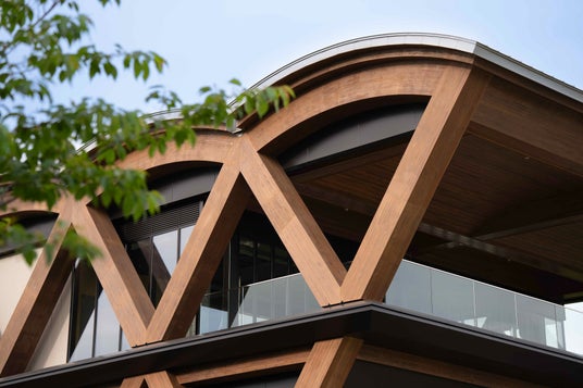 脱炭素社会の実現に向けて木材の利活用が注目されるなか、「横浜ティンバーワーフ」では再生可能な木材を積極的に使用し、大気中への二酸化炭素排出の削減に取り組んでいます。ファサードのトラス柱には木質ハイブリッド集成材を採用。木と鉄骨のハイブリッドにより耐火性能を確保し、その上表層木材の取り替えを可能とすることで、定期的なメンテナンスによって建物の長期的かつ持続的な価値の維持・向上を支えます。ダイナミックな意匠性と持続可能性を備えた建築により、環境に配慮し木材の利活用を促進するシンボルとしてまちづくりに貢献します。