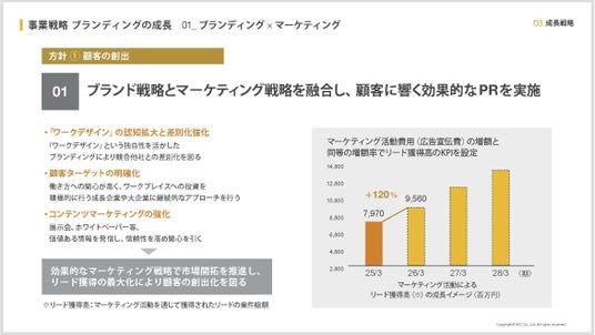 当社独自のコンセプトである『ワークデザイン』を軸に据えたブランディングを通じて、ブランドの認知度向上と市場における明確な差別化を図ります。これにより、ターゲット顧客の明確化とブランド価値の最大化を目指し、付加価値を発揮できる顧客を創出していきます。
