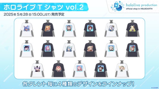 ホロライブプロダクション関連のアイテムを取り扱うショップ「hololive production official shop in HOLOEARTH」にて、各タレントのイラストがデザインされた「ホロライブTシャツvol.2」全17種類を販売中です。