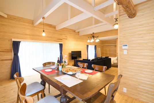 山中湖まで徒歩5分で行ける、湖畔のかわいらしいロフト付き一軒家。レイクリゾートや富士五湖の自然を楽しむのにとても便利です。レストランなどで賑わっているエリアなので、滞在中も快適。ご家族や少人数の集まりにぴったりです。