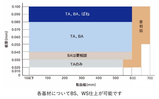 日本金属株式会社(本社:東京都港区、取締役社長 下川康志、以下「日本金属」、証券コード:5491)は、自動車関連、電池関連、半導体関連等の市場向けに、独自技術で板厚0.1mm未満のステンレス箔を生産しております。当社のステンレス箔は、高精度に加えて広幅、大単重を特長としており、お客様の生産性向上や歩留り向上、工程削減にも貢献します。また、光沢肌“BS:Bright Surface”と白肌“WS:White Surface”の2種類の表面肌を拡販強化製品としてラインナップしており、表面肌での意匠や機能へのニーズにも対応します。