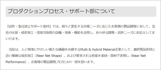 日本金属株式会社(本社:東京都港区、取締役社長 下川康志、証券コード:5491)は、お客様との新しい共創を目指し、2025年4月1日(火)に『試作・委託加工サポート受付』を開設。新たに試作・サンプル・委託加工を請け負う専門部署『プロダクションプロセス・サポート部』を設置し、受付をスタートいたしました。