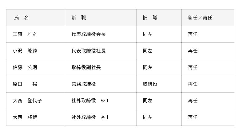 取締役人事(2025年6月26日付)