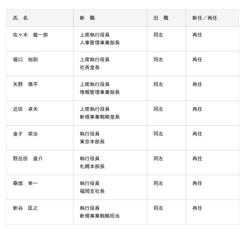 執行役員人事(2025年6月26日付)