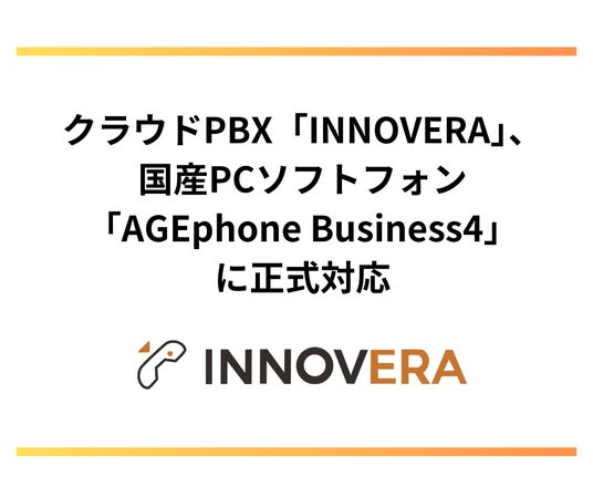 電話のDXを推進する株式会社プロディライト(大阪市中央区:代表取締役社長 小南 秀光、証券コード:5580、以下プロディライト)は2024年9月24日、株式会社ageet(京都府向日市:代表取締役社長 岡崎 昌人、以下ageet)が提供するPCソフトフォン「AGEphone Business4」にクラウドPBX「INNOVERA」が対応したことをお知らせします。
