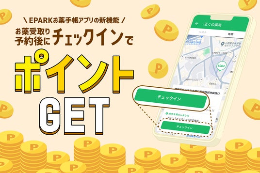 電子版お薬手帳「EPARKお薬手帳」にチェックイン(お薬受け取り店舗への到着確認)機能が追加リリース!機能利用でポイントが貯まります