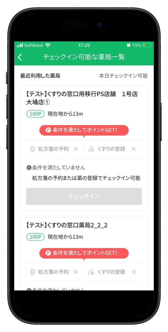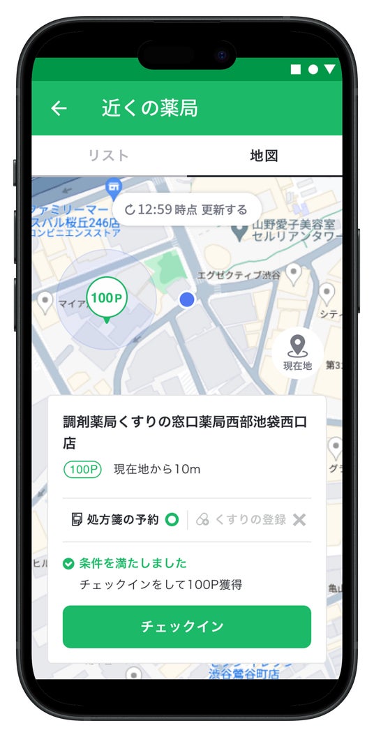 チェックインで、「くすりの窓口ポイント」を獲得